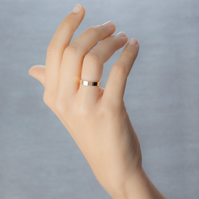 Alianza de oro amarillo 18 kilates, modelo de chapa plana con acabado brillo que mide 4 mm. de ancho y 1,30 mm. de espesor, perfecta tanto para señora como para caballero, diseño atemporal que siempre permanece actual, también se fabrica en oro de 9 ktes.