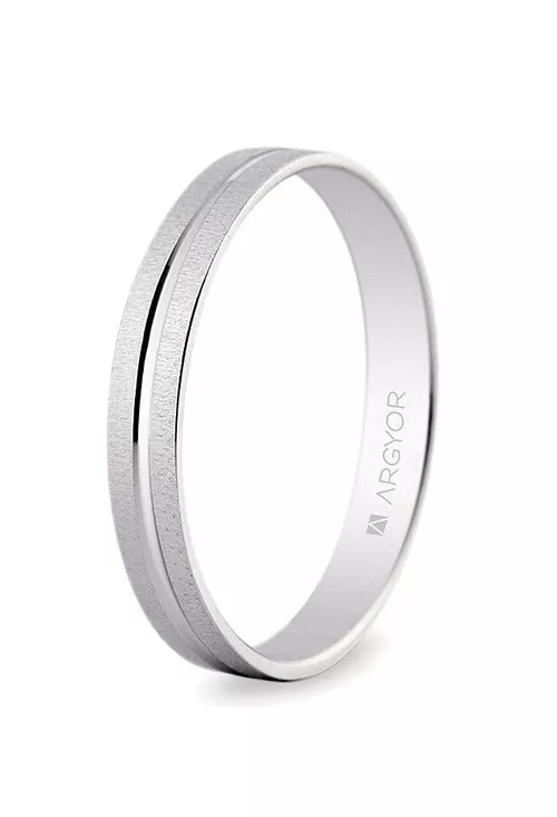 El diseño de la Alianza de oro blanco 9kts es una obra maestra de simplicidad y elegancia. Con un ancho de 3 mm, este anillo es perfecto para aquellos que buscan una pieza que no sea ostentosa, pero que aún así refleje buen gusto y sofisticación. La sección plana y el acabado matizado del anillo están divididos por una hendidura en brillo, creando un contraste atractivo que resalta su diseño limpio y moderno. Este detalle hace que la alianza sea única y llamativa sin ser excesiva.