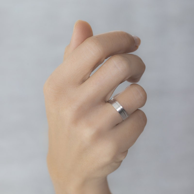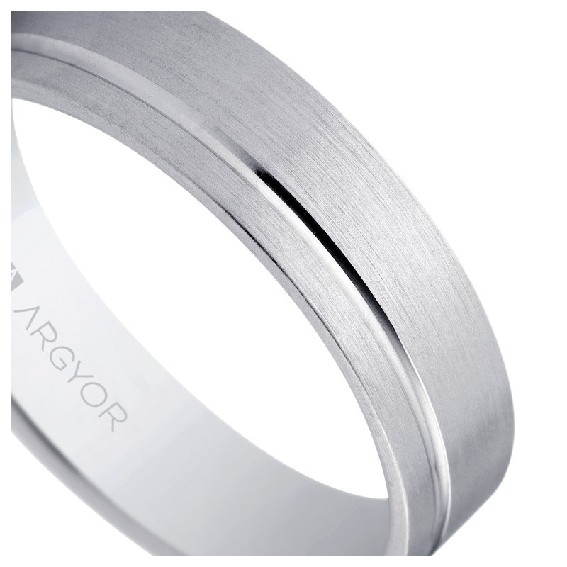 Alianza de matrimonio brazo plano en plata 925 mmas, con un ancho de 5 mm y un perfil inferior a 1,40mm, terminado con un matizado con textura satinada y ranura brillante, este anillo de boda es una opción increíble por su precio y calidad.