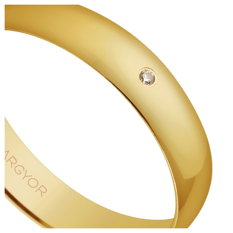 El diamante de talla brillante de 0,01 ct en la Alianza en oro añade un toque de lujo y sofisticación. Con un color H y una pureza SI, este diamante está cuidadosamente seleccionado para asegurar la mejor calidad. El diamante no solo aporta belleza, sino también simboliza la pureza y la eternidad del amor, convirtiendo a esta alianza en un verdadero tesoro que pasará de generación en generación.