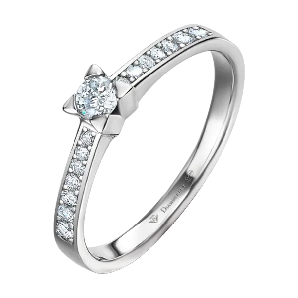 Seguidos en armonía a cada lado del diamante principal, los diamantes secundarios discurren a lo largo del anillo compromiso oro blanco 18k y diamantes creando un sendero de centelleo y esplendor. Perfectamente alineados, estos 14 diamantes añaden profundidad al diseño, sumando lujo y resplandor adicional a la pieza.