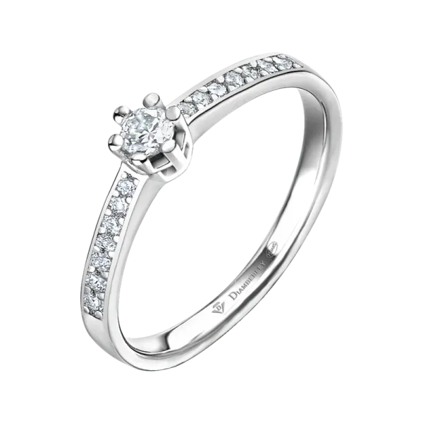 Este anillo de compromiso evoca la luz del amor puro, cada diamante talla brillante añadiendo una nota de esplendor al acorde conjunto. Su diseño se convierte en el escenario donde cada destello es protagonista de la promesa que se celebra.