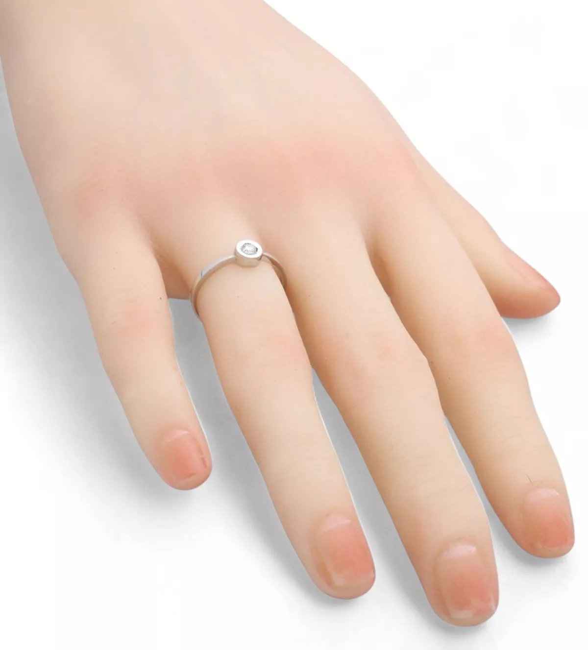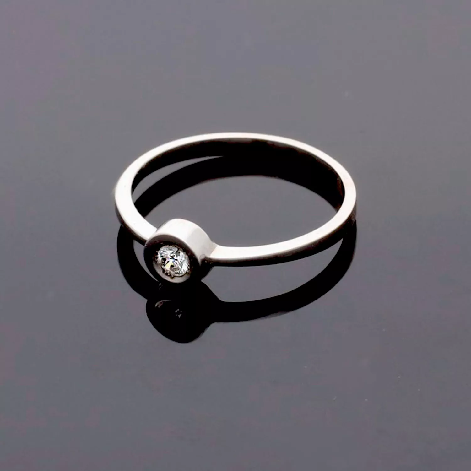 Pide su mano con el “Redondel”. Anillo de compromiso en oro blanco 18k y diamante de 0,10 ct. Un diseño minimalista para un momento mágico.