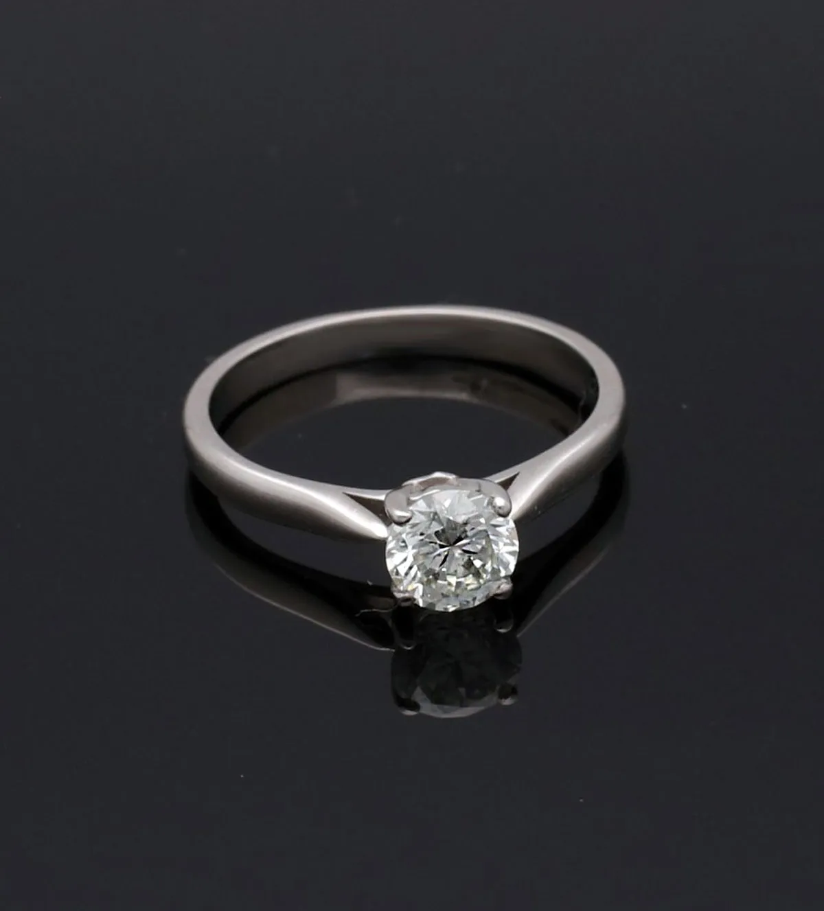 Anillo de oro blanco 18k con diamante 0,65 ct, en garra