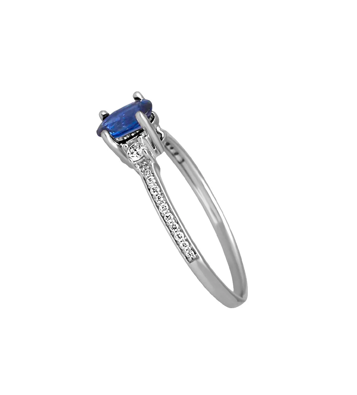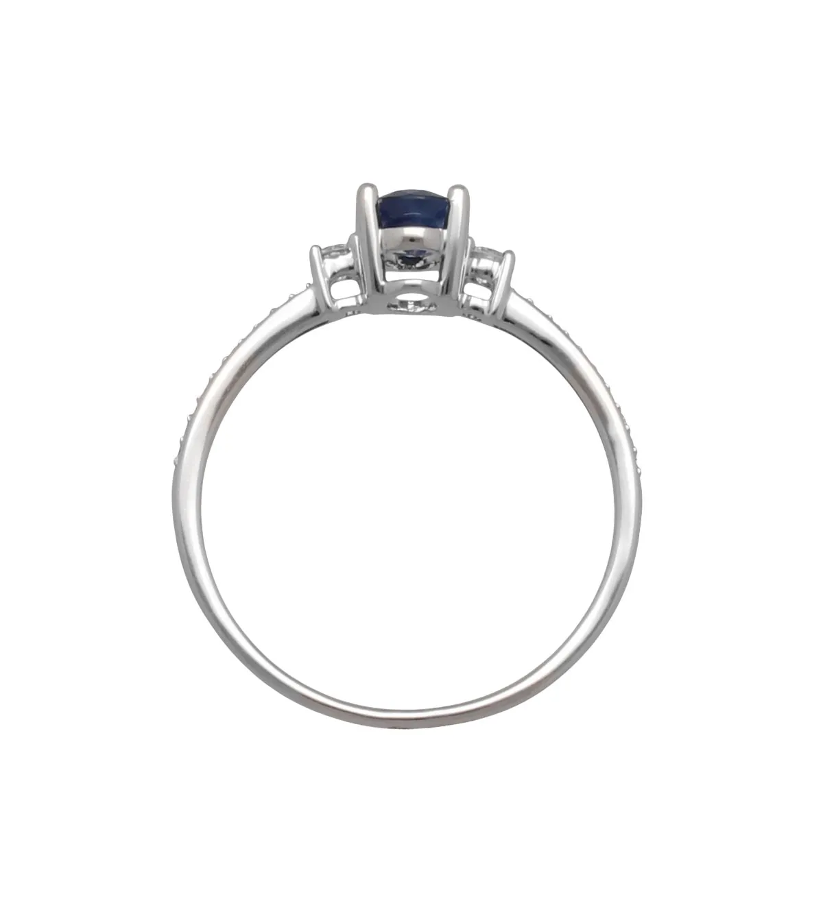Anillo de oro blanco 18k con diamantes y zafiro oval
