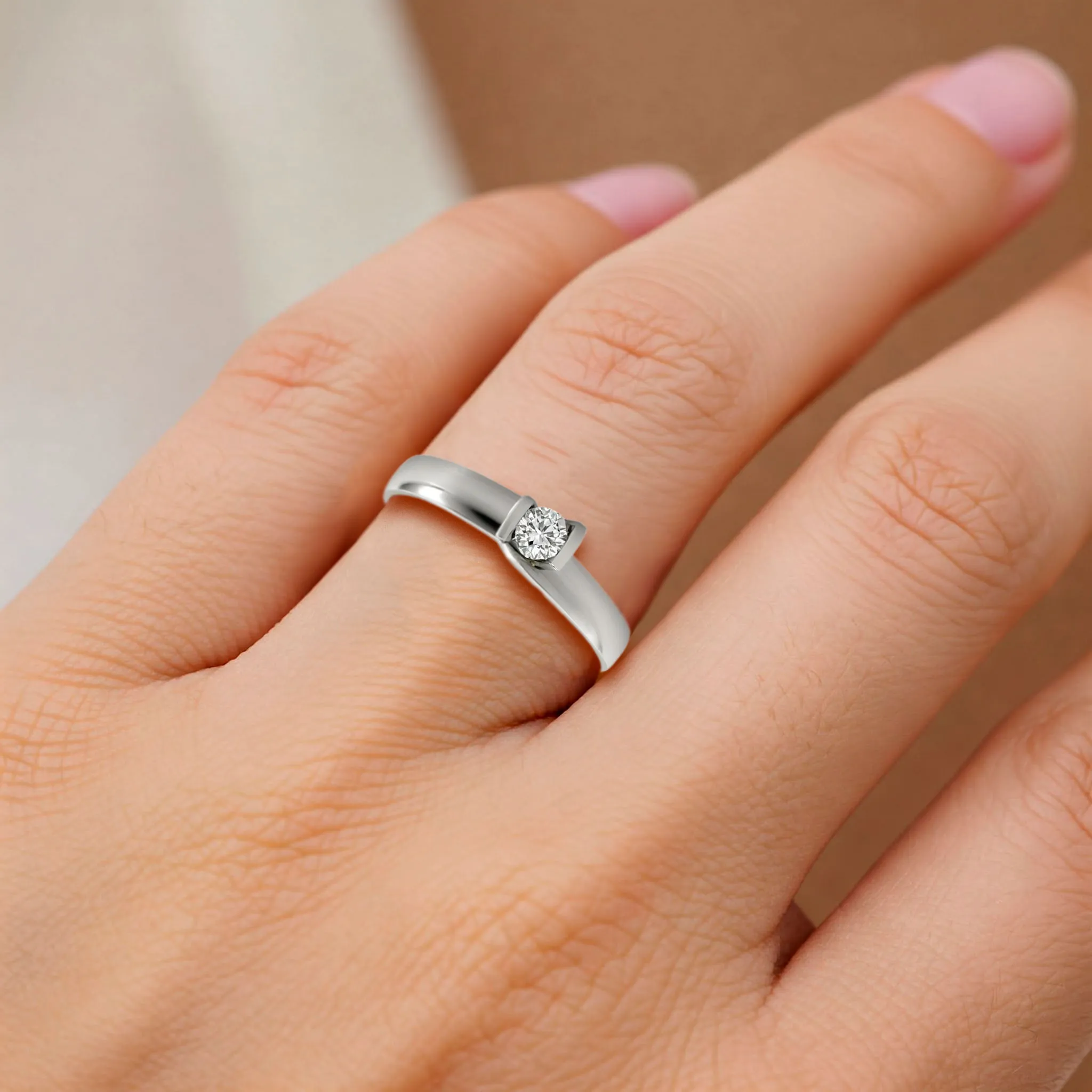 Anillo de oro blanco con brillante engaste presión 0,16 ct