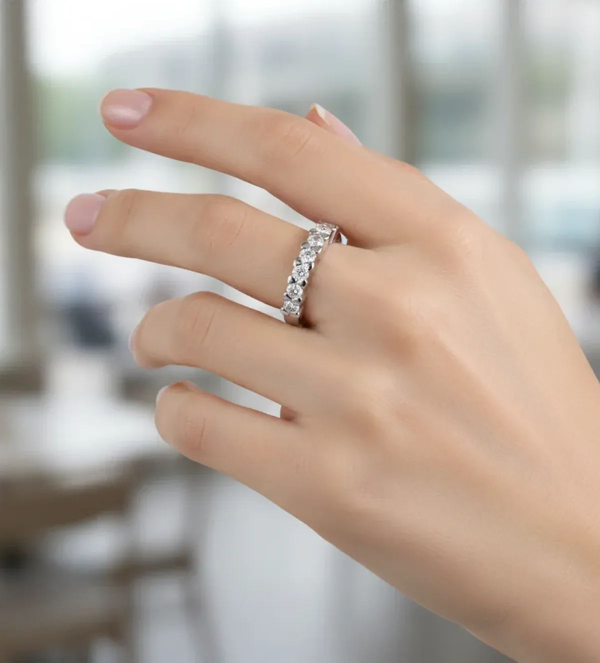 Anillo de oro blanco con diamantes 1095: la media alianza que simboliza elegancia y compromiso