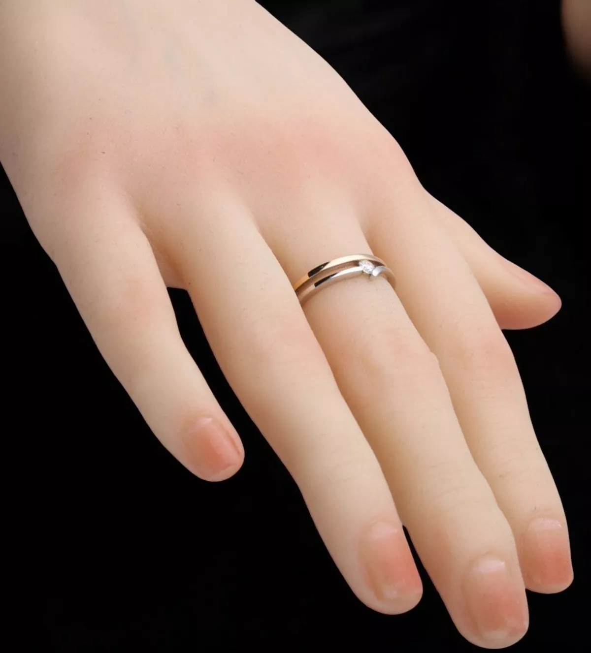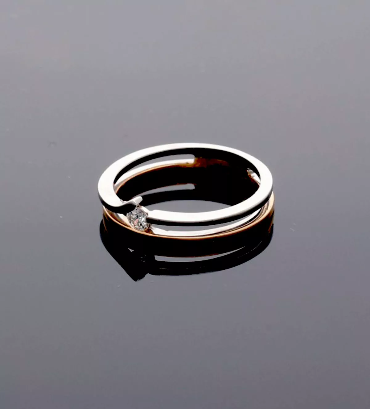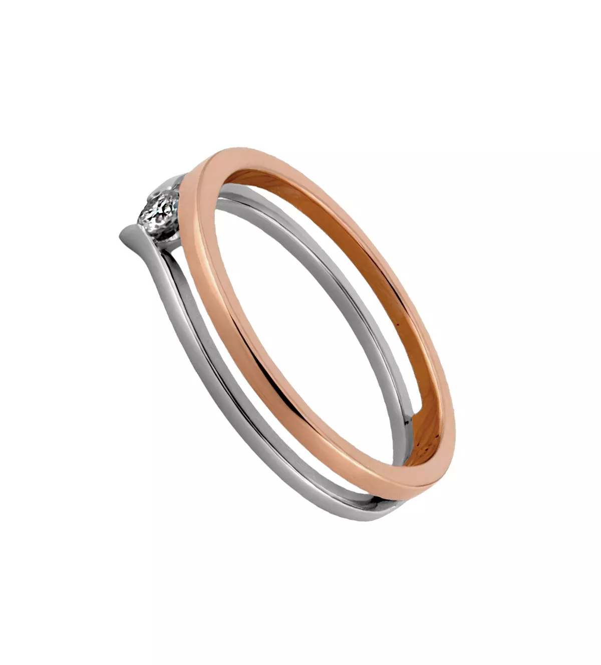 Anillo de oro rosa y blanco con diamante 0,10 ct “Armonías”