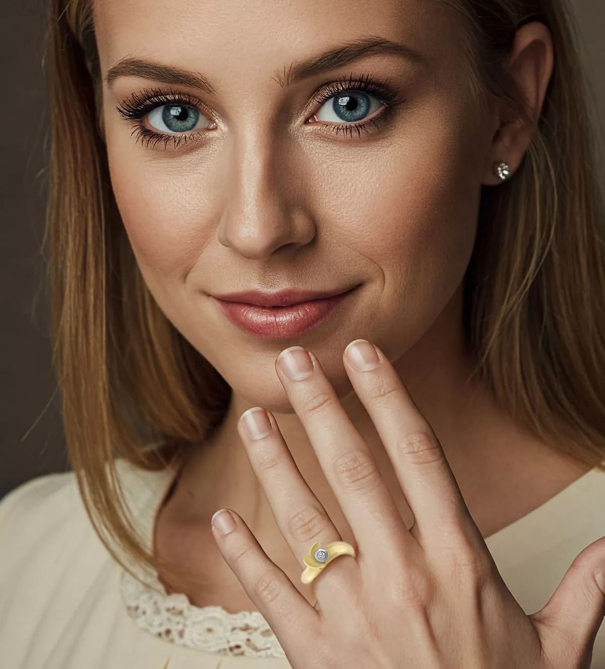 El oro de 18K es conocido por su durabilidad y brillo excepcional, garantizando una joya resistente al paso del tiempo. Su diamante natural aporta un toque de lujo y sofisticación, haciendo de este anillo una elección inigualable.