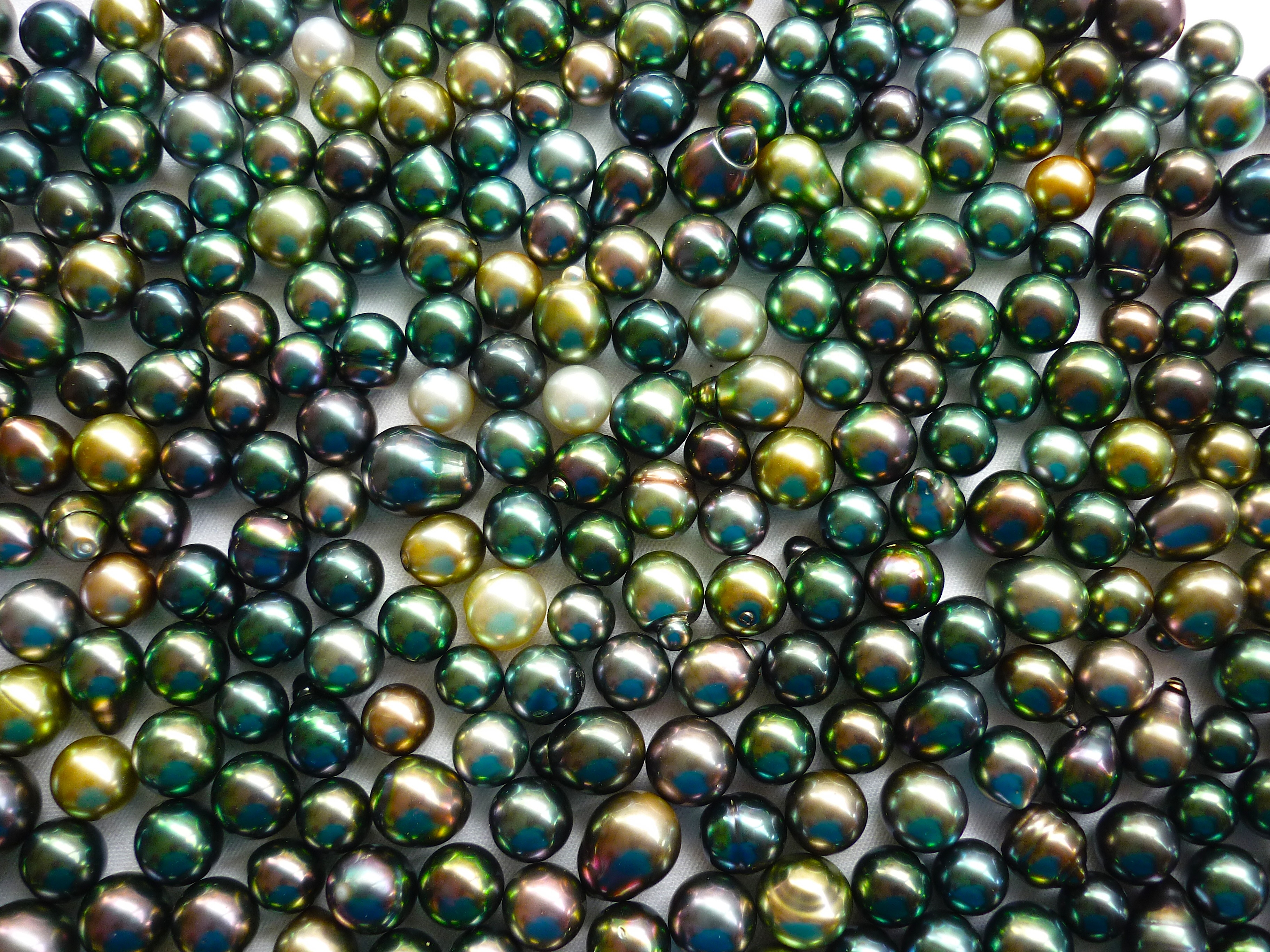 Por último, el brillo de las perlas procede de la reflexión de la luz sobre la superficie cristalina de la perla, mientras que la iridiscencia se produce por medio de la refracción y difracción de la luz en las múltiples capas de nácar traslucido que forman las perlas.