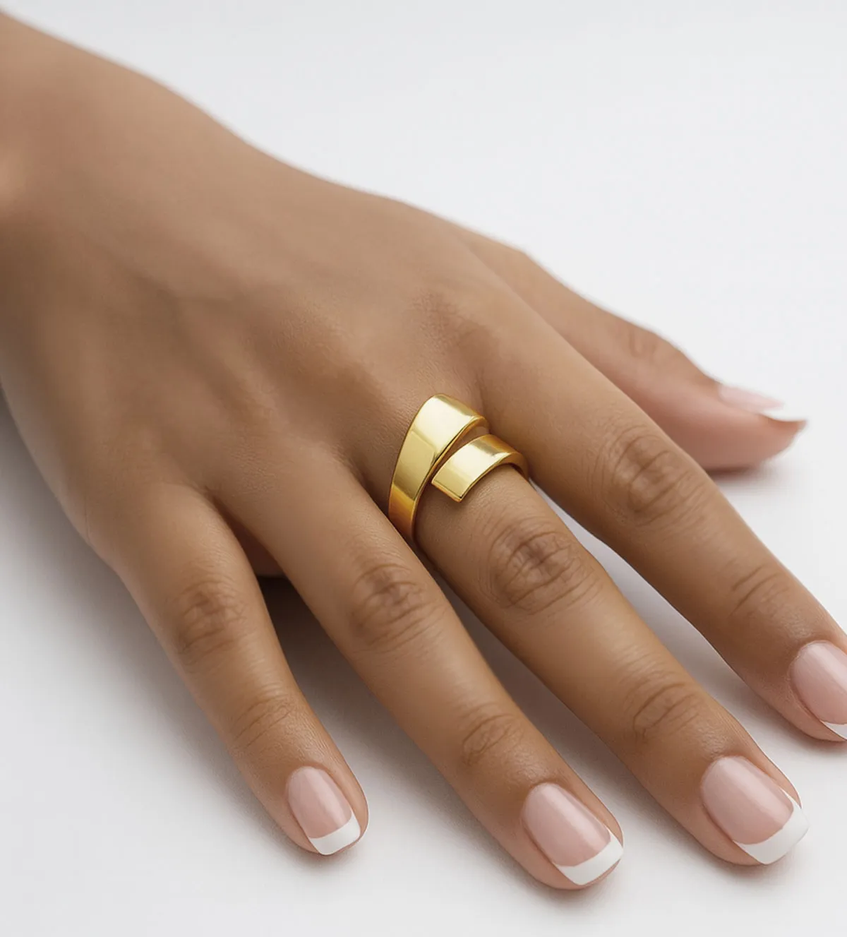 Su diseño limpio y moderno permite combinarlo con piezas minimalistas, geométricas o incluso anillos más llamativos.