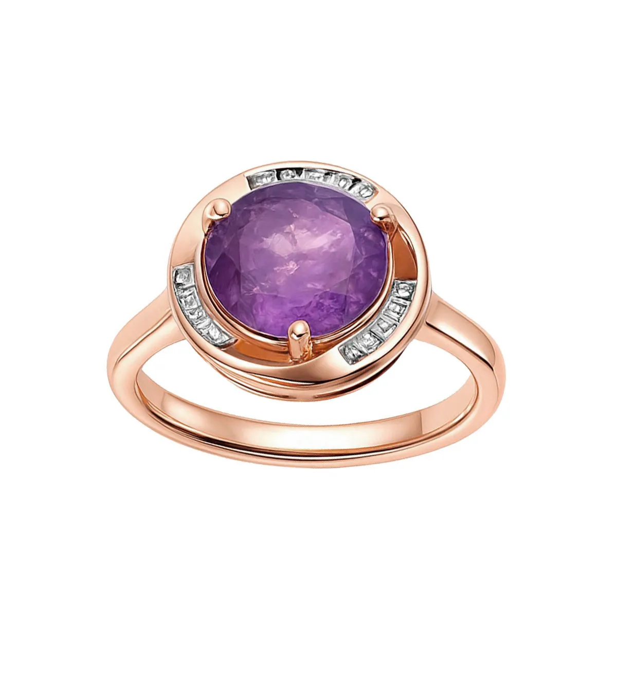 Este anillo de plata chapada en oro rosa destaca por la belleza natural de su amatista central y el destello que aportan las circonitas que la rodean. Su estilo sofisticado lo convierte en una pieza perfecta tanto para el día a día como para eventos especiales. Como parte del catálogo exclusivo de Rubí Joyeros, la mayor joyería online de España, esta pieza ofrece calidad, diseño y un acabado impecable reconocido por los mejores buscadores.