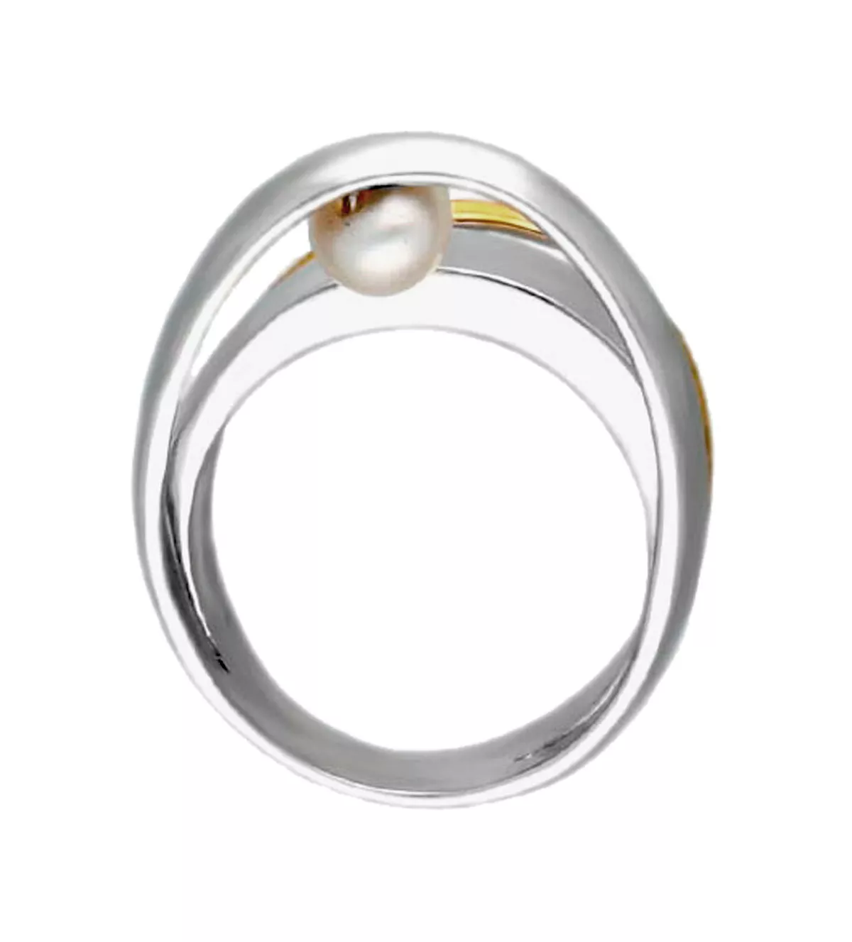 Anillo de plata bicolor con perla cultivada “As de Plata”