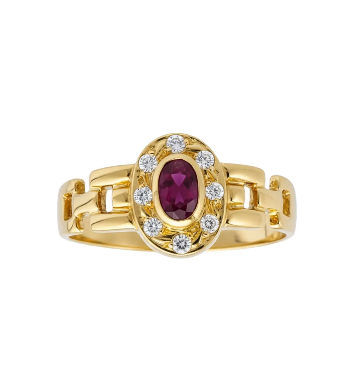 El rubí es una piedra preciosa históricamente vinculada al amor, la pasión y la vitalidad. En muchas culturas se considera símbolo de protección y prosperidad. Incorporado en un anillo de oro, su significado se potencia, representando fuerza, determinación y éxito.