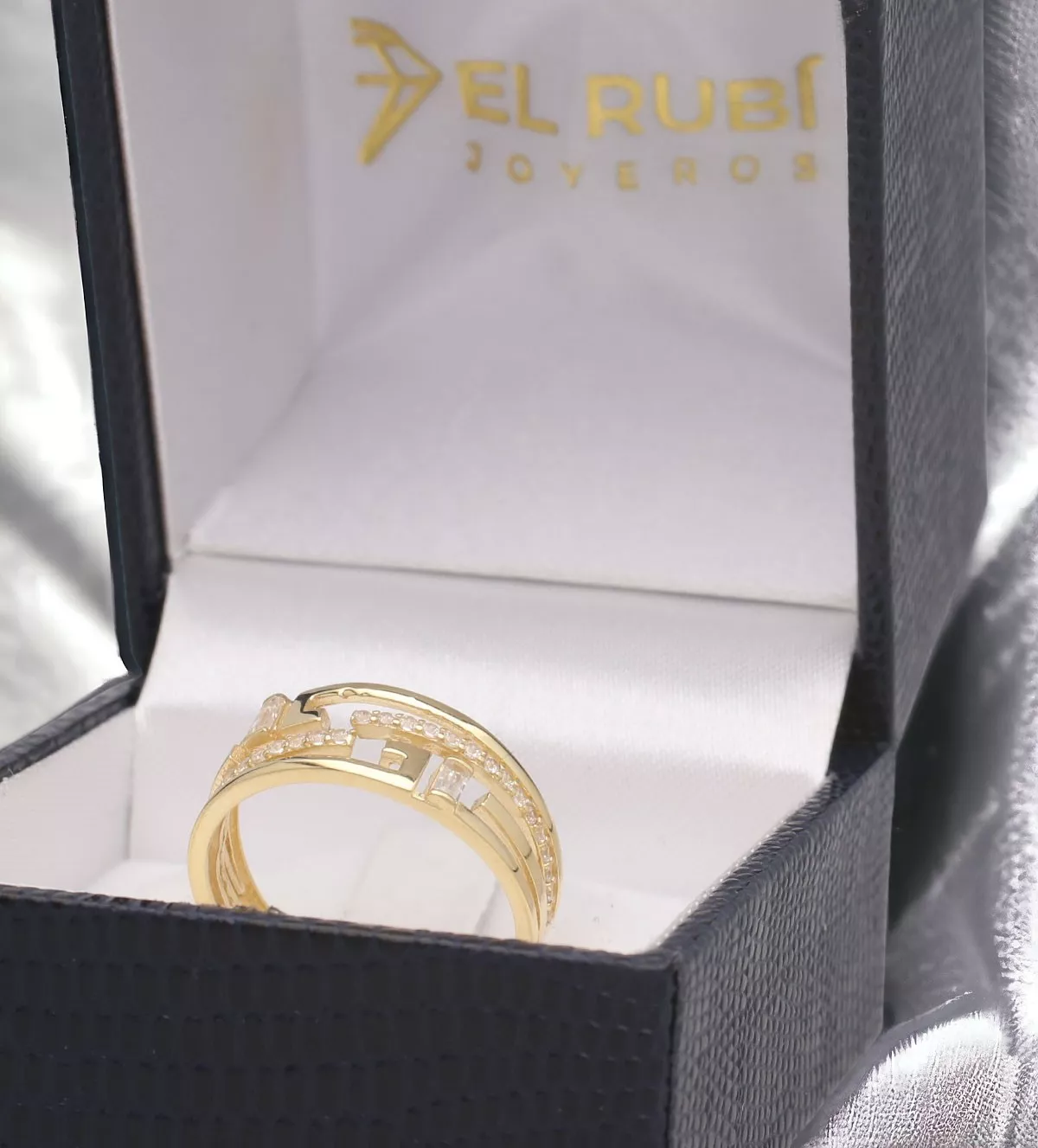 Descubre el Anillo de oro Greca Lucida: Una Joya de Oro Amarillo de 18 Quilates con Circonitas