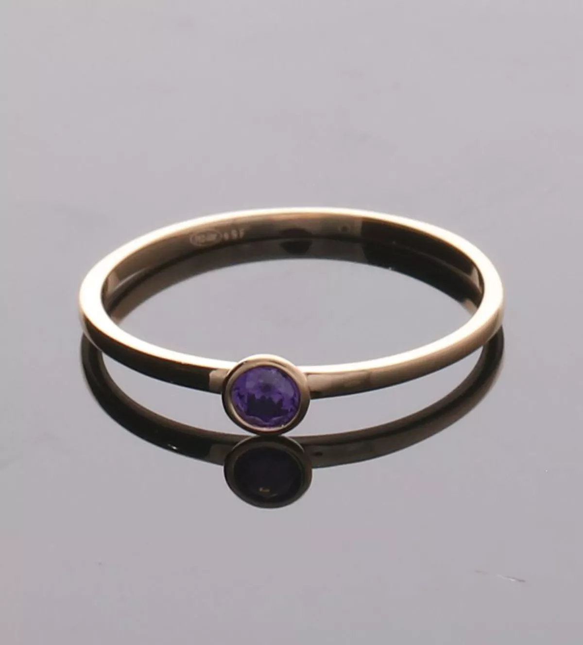 Anillo de oro amarillo 18k Solstice Amatista, Este elegante Anillo de oro amarillo 18k Solstice Amatista es una preciosa joya que destaca por su brazo plano acabado liso y brillo espejo. Con un diseño sencillo luce una amatista de talla redonda engastada en boquilla, perfecta para lucir de forma sencilla y elegante diciendo mucho de tu buen gusto.
