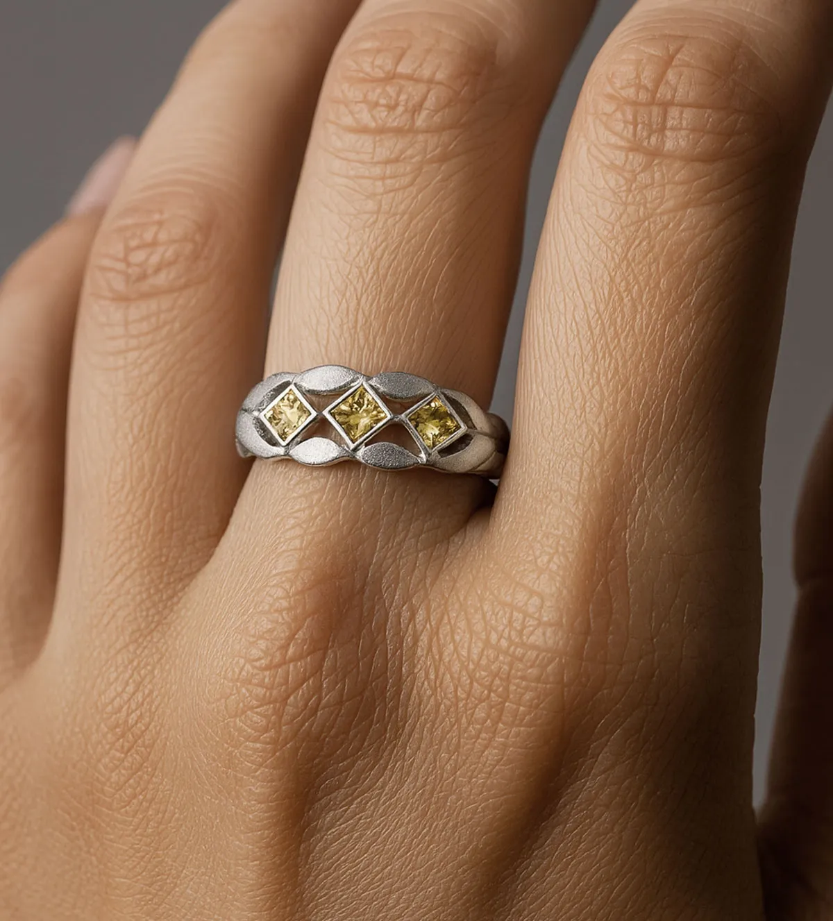 Anillo de oro blanco 18k con citrinos – Diseño original, elegante y muy combinable