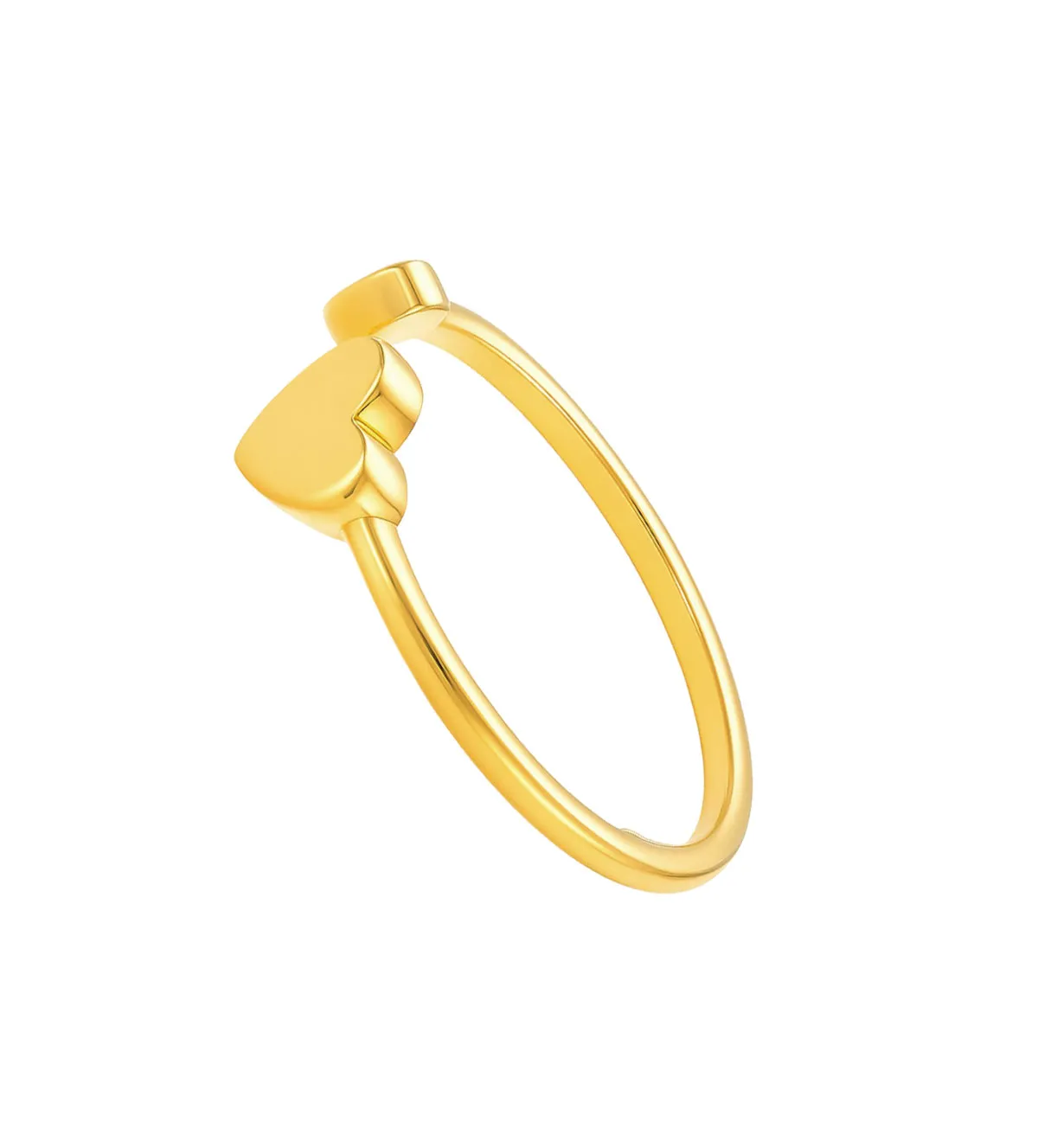 Los corazones que rematan el diseño representan amor, compromiso y unión. Este anillo de oro es perfecto como regalo para San Valentín, aniversarios, fechas señaladas o para sorprender sin motivo aparente.