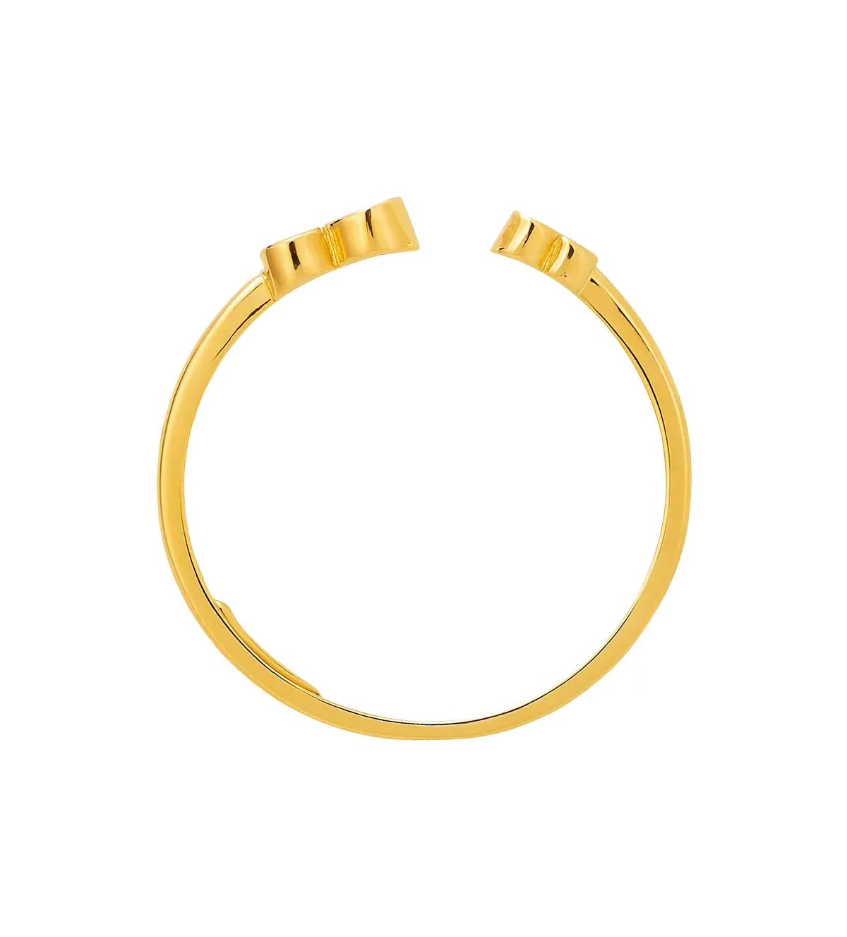 Anillo de oro que enamora a primera vista. Esta joya en oro amarillo de 18 ktes destaca por su diseño abierto con delicados corazones que simbolizan un amor eterno y auténtico. Su ajuste adaptable permite regalar sin preocuparse por la talla, convirtiéndolo en el detalle perfecto para sorprender en cualquier ocasión. Pieza exclusiva, limitada y con disponibilidad inmediata. ¡Aprovecha antes de que se agote!