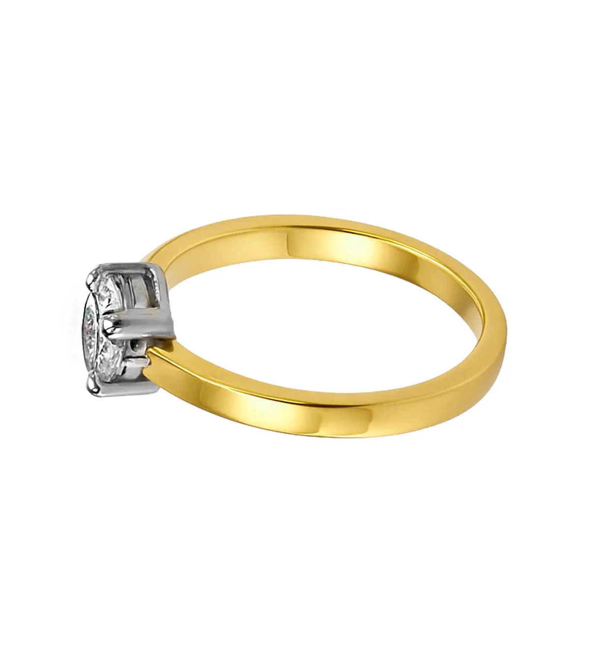 Este modelo destaca por su diseño bicolor y minimalista, que fusiona tradición y contemporaneidad. El brazo plano de oro amarillo aporta solidez y equilibrio visual, mientras la garra de seis patas en oro blanco enmarca la circonita, potenciando su brillo natural.
