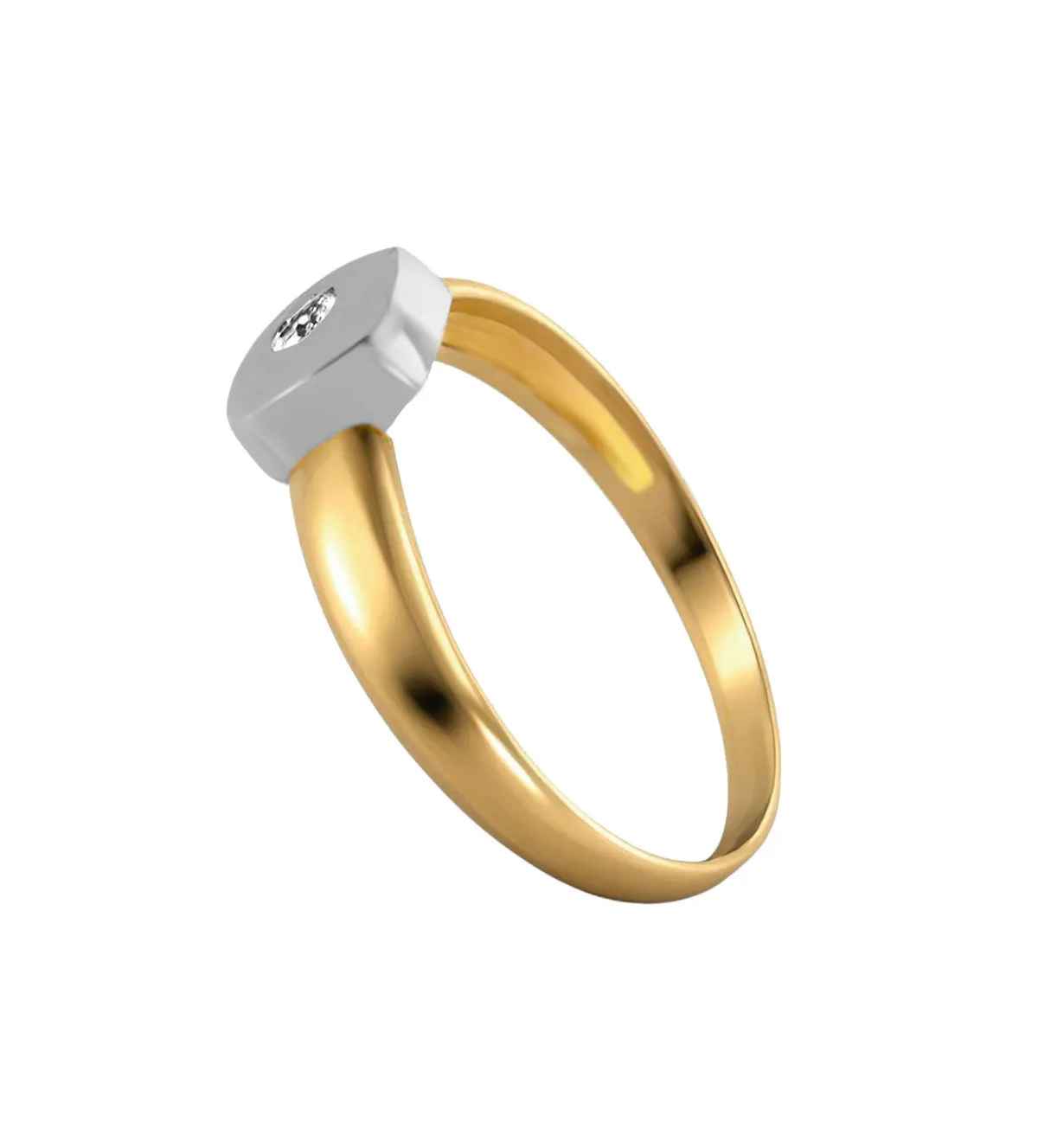 El anillo de oro perfecto para un momento inolvidable! Este elegante anillo de oro bicolor 18K combina un brazo de oro amarillo con un chatón cuadrado de oro blanco que resalta su circonita central. Su diseño clásico y versátil lo convierte en la elección ideal para sellar tu amor. Disponible en stock para entrega inmediata. ¡No dejes pasar esta oportunidad y sorprende con un detalle eterno!