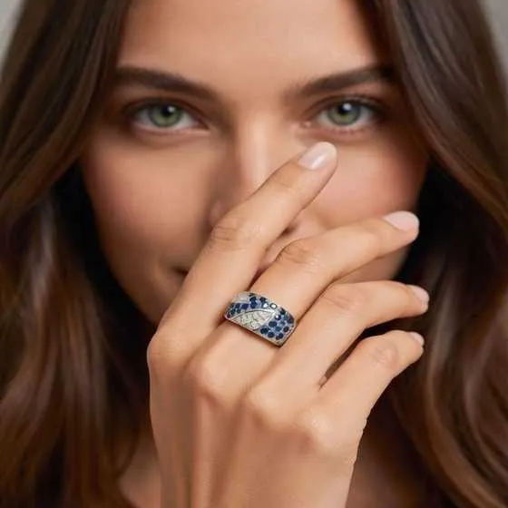 El diseño del anillo ha sido pensado para ofrecer comodidad sin renunciar a una estética impactante. El brazo ancho proporciona estabilidad y presencia, mientras que su disminución progresiva permite que el ajuste en el dedo resulte cómodo y natural.