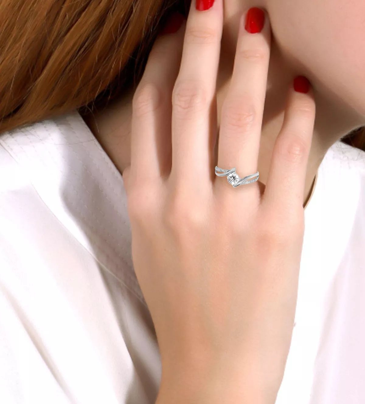 Este anillo tipo híbrido es una obra maestra que combina la sofisticación de un solitario con la encantadora estética de una media alianza. El diseño “tu y yo” incorpora dos brazos que se conectan desde la parte superior e inferior de la piedra central, creando un símbolo visual de unión eterna. La piedra central se encuentra delicadamente sostenida por una garra de cuatro patas, resaltando su brillo y añadiendo un toque romántico.