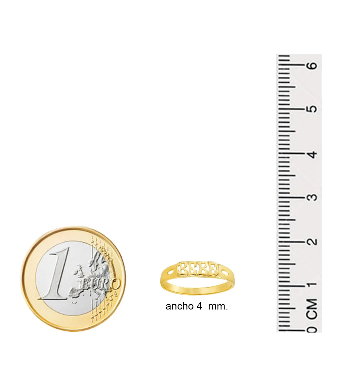 Con un ancho de 4 mm y un peso aproximado de 0,90 gramos, este anillo de oro para bebé está cuidadosamente diseñado para adaptarse cómodamente a los pequeños dedos. Su forma redondeada y superficie lisa garantizan un ajuste suave y seguro, evitando cualquier incomodidad. Cada detalle ha sido pensado para ofrecer una experiencia segura y agradable, manteniendo siempre el equilibrio entre estética y funcionalidad.