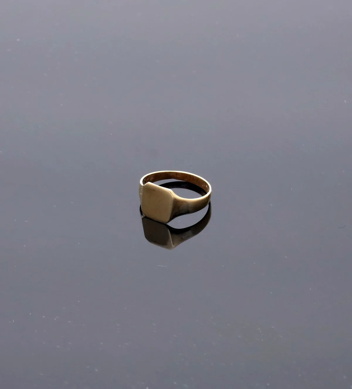 El diseño tipo sello de este anillo de oro combina tradición y elegancia. Su superficie plana permite personalizarlo con grabados finos —como el nombre del bebé, una fecha especial o un símbolo significativo—, convirtiéndolo en una pieza verdaderamente única. Su estructura maciza refleja la pureza del metal y la atención artesanal con la que ha sido elaborado.