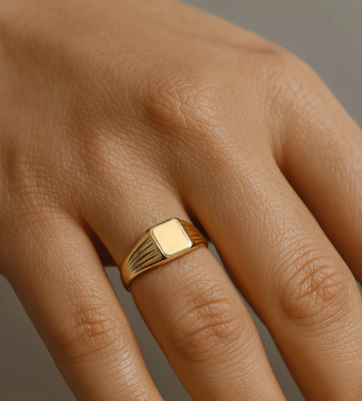 Una de sus mayores ventajas es la posibilidad de grabar una inicial o elemento personalizado en la cabeza cuadrada. Esta característica convierte el anillo de oro en un sello único, perfecto para inmortalizar un nombre, una fecha o un recuerdo especial. Además, su diseño sobrio pero distinguido lo hace adecuado para cualquier estilo.
