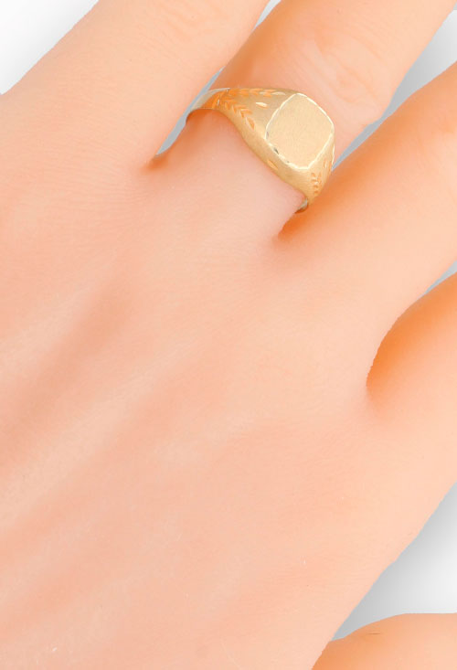 Sello hombre oro amarillo 9 kilates, sello con cabeza de forma cuadrada, brazo adornado con cortes lapidados que evocan motivos florales, esta terminado combinando el brillo y el mate, ideal para grabar una inicial o un enlace de dos iniciales, un regalo perfecto para tener un recuerdo de por vida. Te ofrecemos el mejor precio posible, precio especial para venta en joyería online.