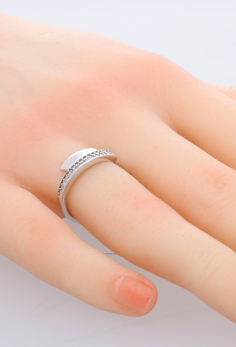 Presentación de la Sortija de Oro Blanco 18k con Diseño Cruzado y Circonitas