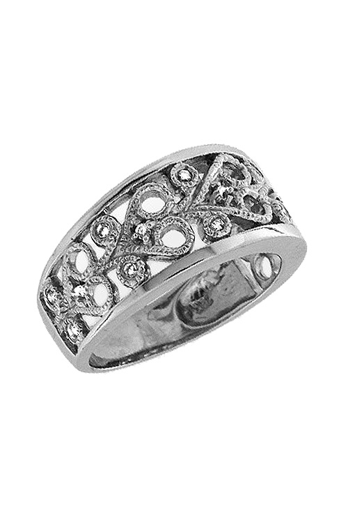 Sortija de pedida realizada con oro blanco, es un precioso y trabajado modelo formado por filigranas calada a modo de antiguos modelos isabelinos, es un anillo diferente con aire vintage para quien gusta de llevar modelos especiales menos convencionales.