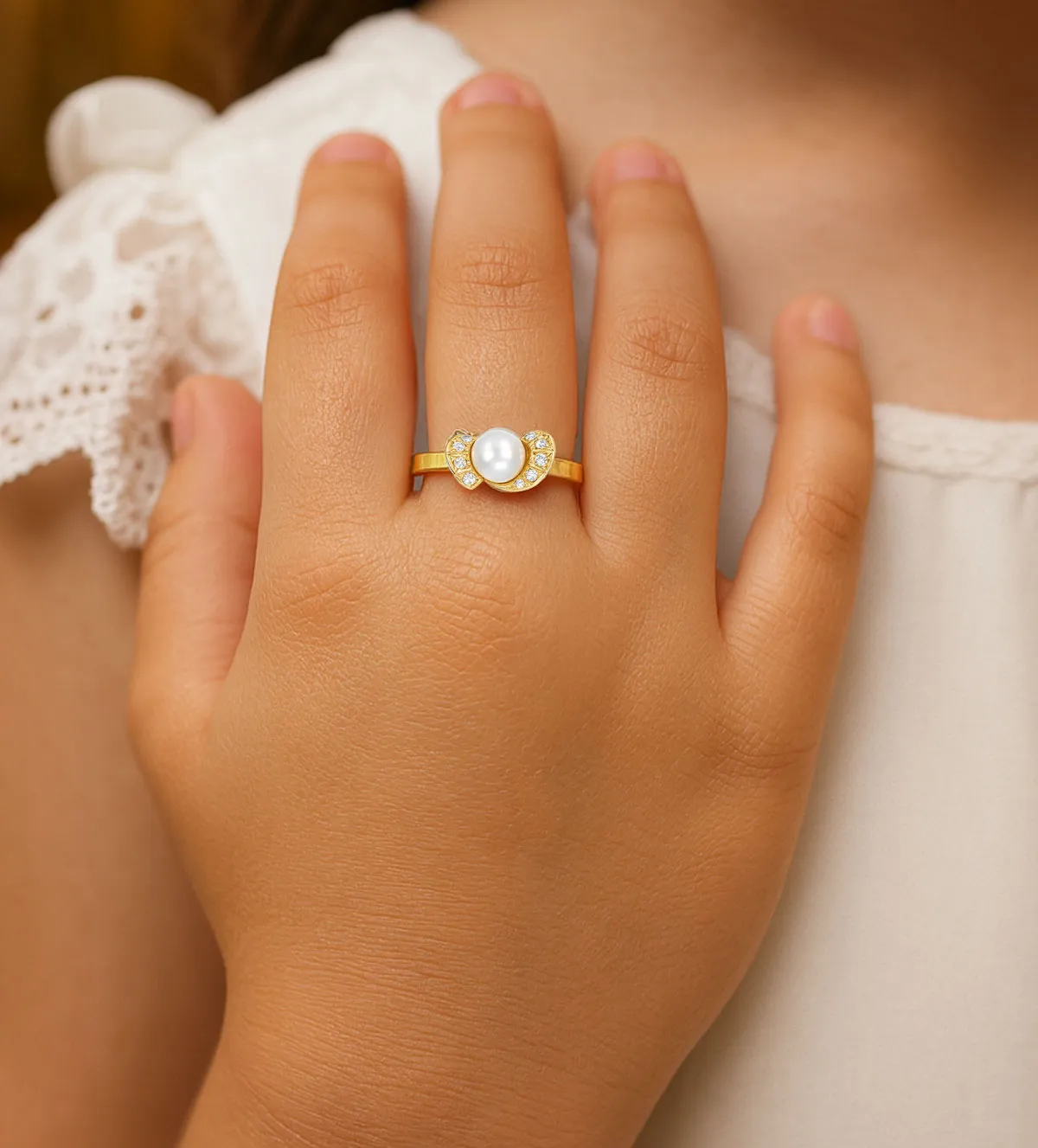 ¡Me encanta este anillo! Lo pedí para la Primera Comunión de mi hija y le queda perfecto, la perla central es preciosa y le da un toque especial. Justo lo que buscaba, por lo que vale no hay color.
