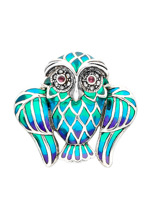 Broche plata para solapa lechuza, bonita representación de una lechuza con las alas abiertas, preciosos esmaltes en tonos azules, morados y verdes a modo degrade, broche que puedes utilizar en solapas, pañuelos o cualquier otro lugar de tu vestimenta, puede ser ideal cualquiera que sea tu estilo, desde los looks más clásicos y elegantes a los más transgresores y urbanitas, este broche dispone de un cierre de seguridad muy fácil de quitar y poner y a la vez muy seguro para evitar perdidas.