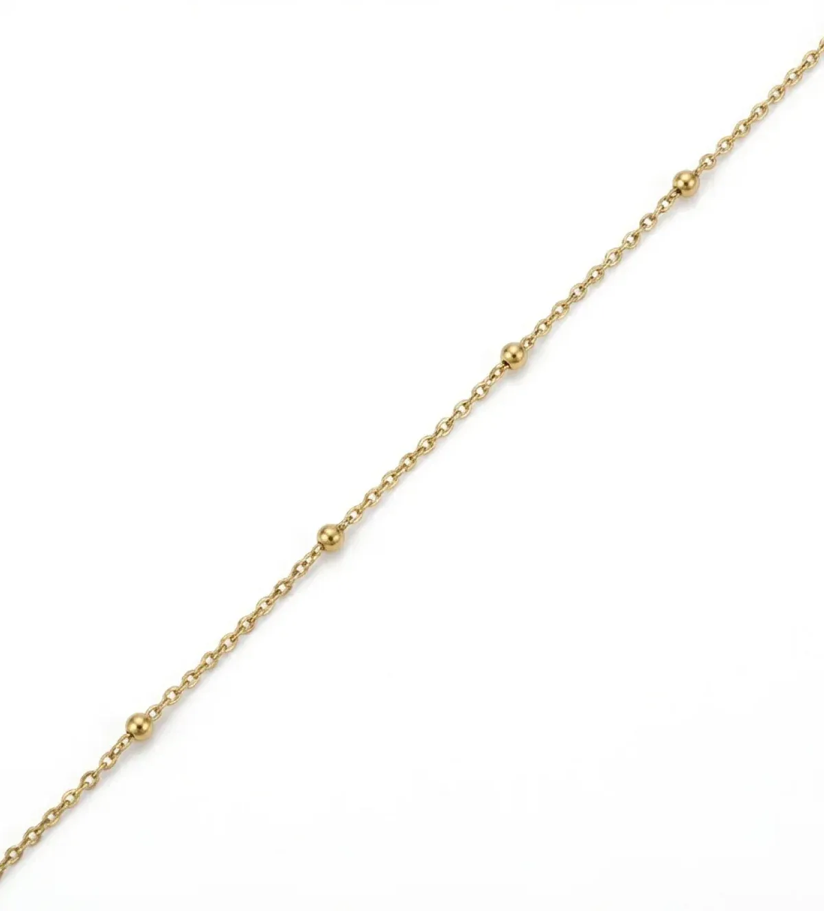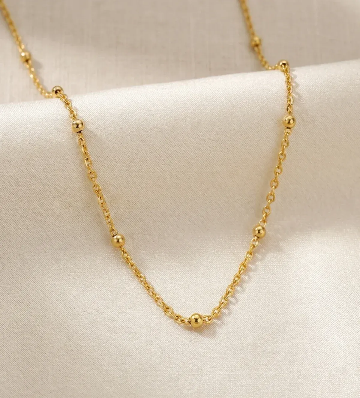 Una de sus principales ventajas es su versatilidad. Puede utilizarse como cadena principal o como base para colgantes de distintos tamaños y estilos. Las bolitas macizas refuerzan la estructura, ayudando a mantener la forma original con el paso del tiempo.