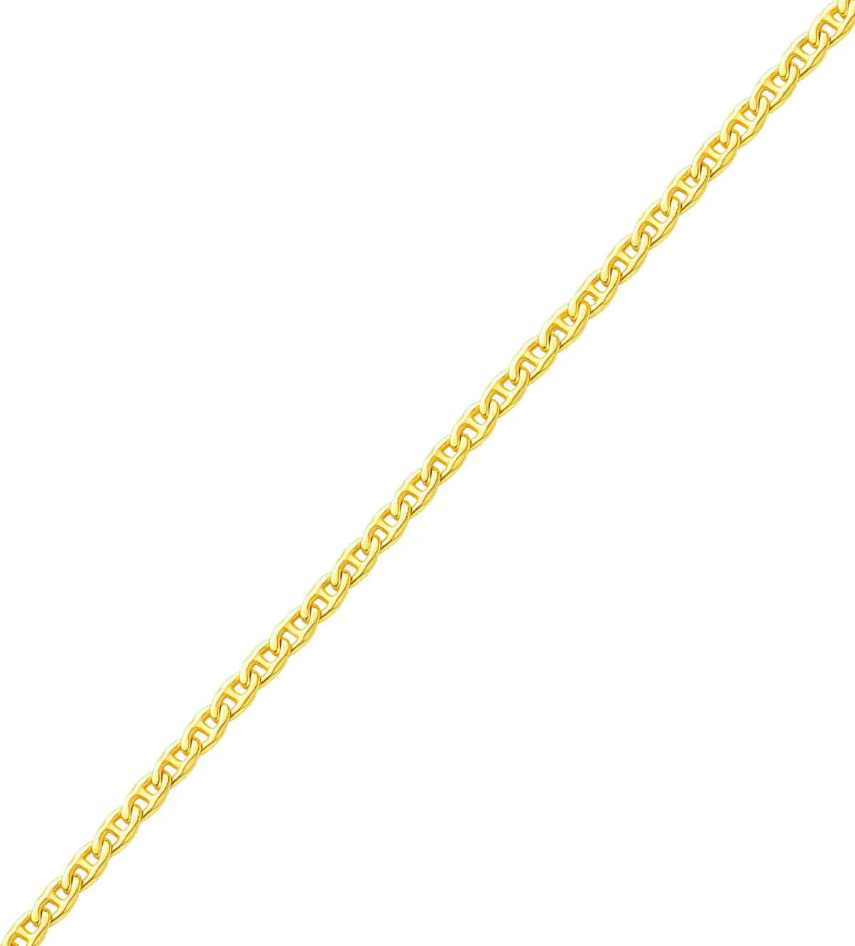 El acabado brillante dorado aporta un toque sofisticado, reflejando la luz de manera sutil pero efectiva. Esta cadena es perfecta para quienes buscan un diseño atemporal que no pase de moda, adecuado tanto para un look casual como para una ocasión especial.