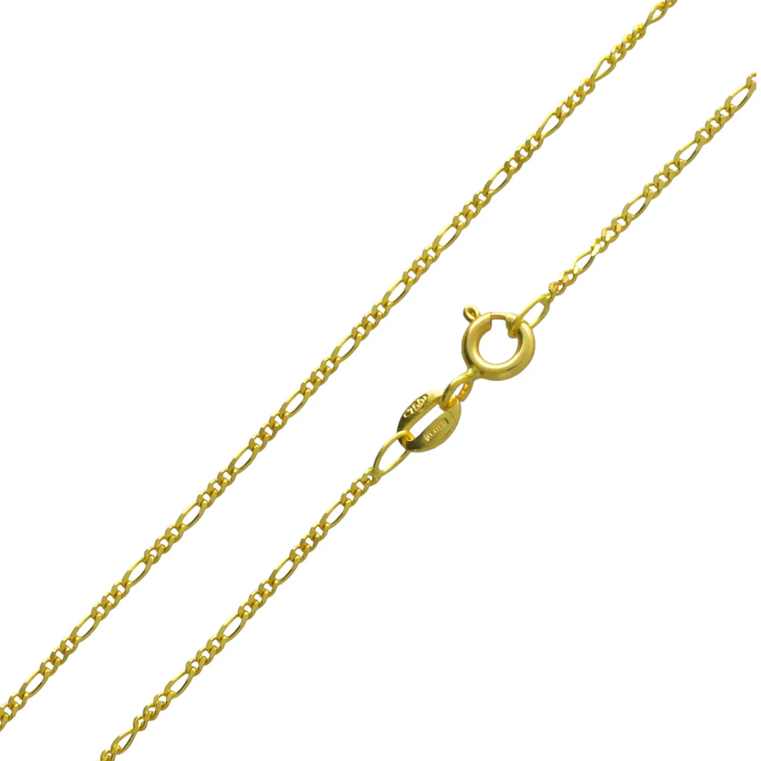 Cadena de oro amarillo 18K modelo 3×1, maciza y resistente, perfecta para colgantes. Disponible en varias longitudes y con stock inmediato.