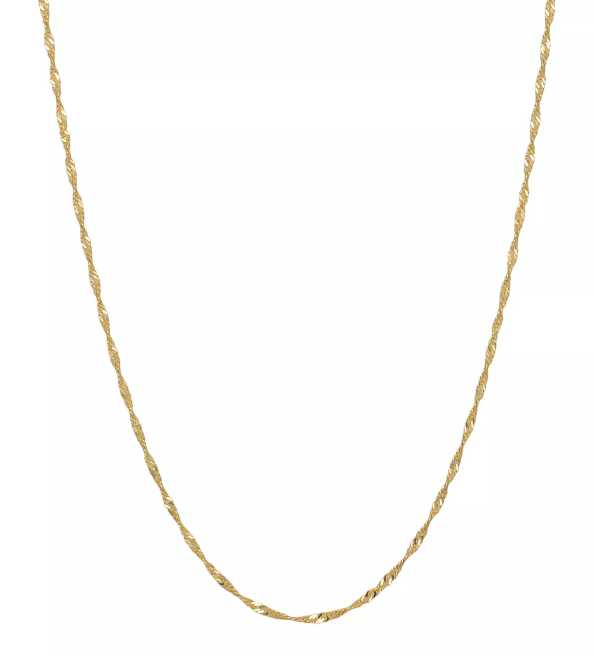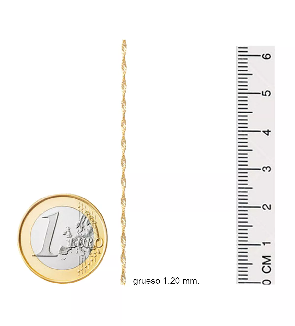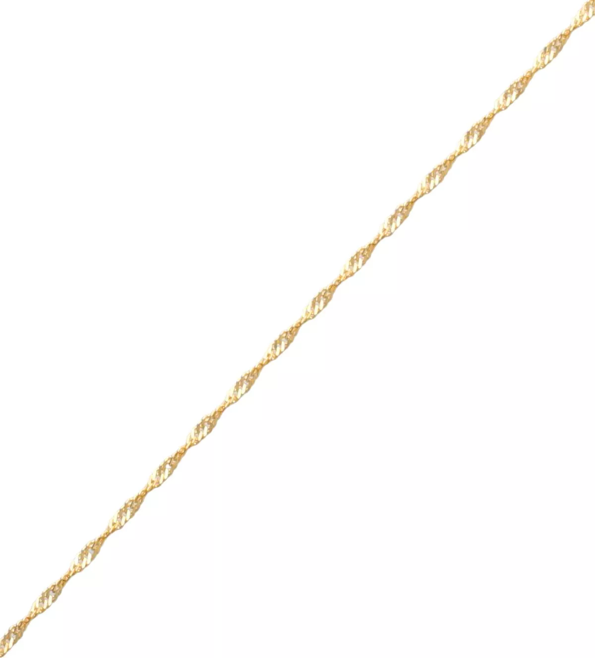 El sistema de cierre tipo reasa garantiza una sujeción segura y fácil de usar, ideal para quienes buscan una joya práctica sin comprometer el estilo. Su diseño único estilo Singapur realza la luz en cada movimiento, haciendo que esta cadena sea el centro de todas las miradas.