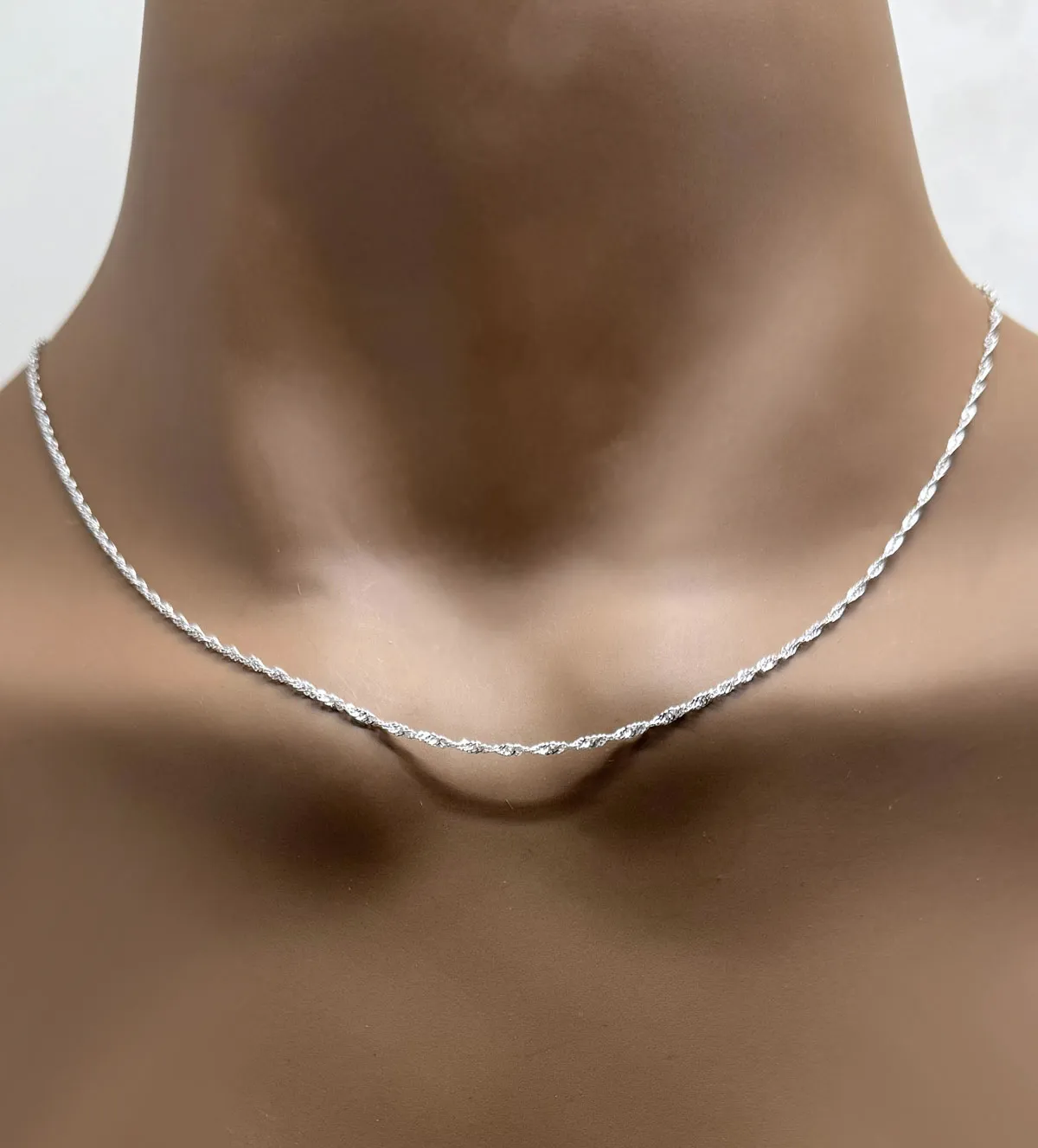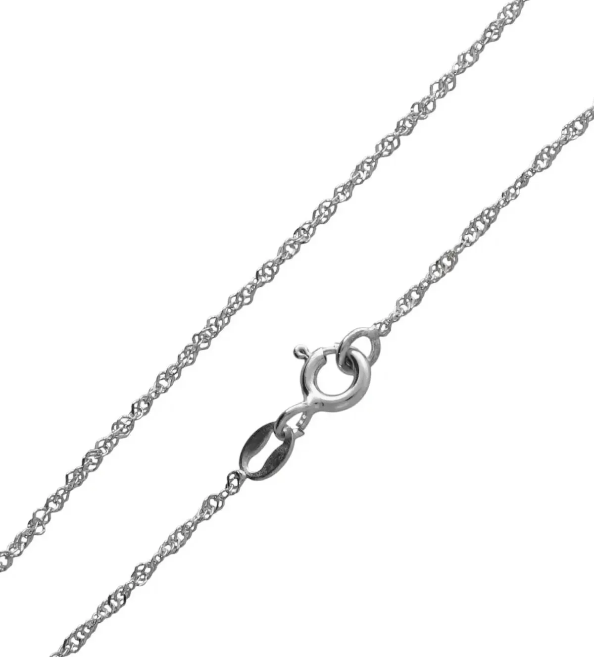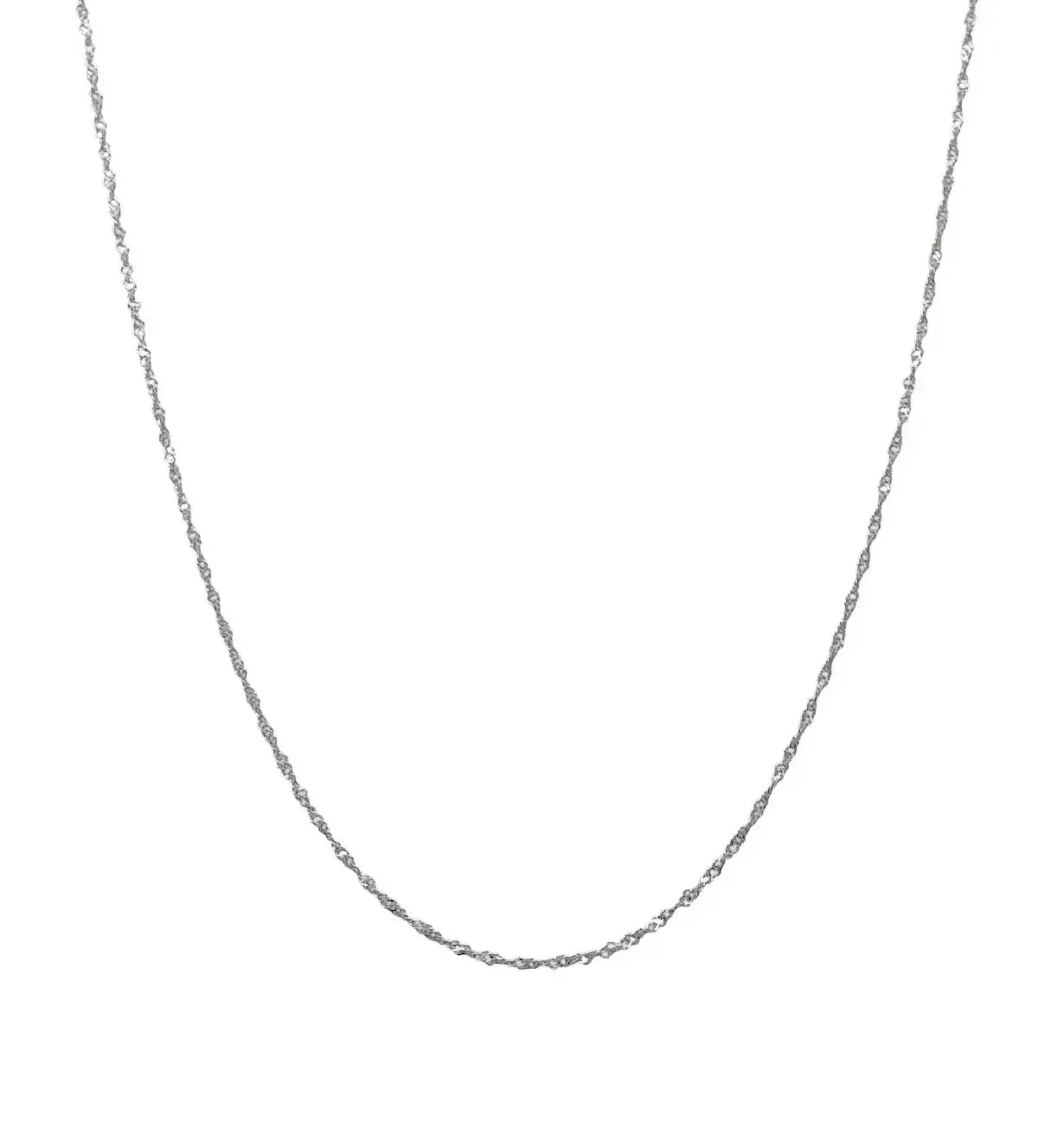 El modelo Singapur, famoso por su apariencia trenzada y giratoria, capta la luz desde múltiples ángulos, generando reflejos dinámicos con cada movimiento. Su estructura ofrece una resistencia superior para su peso, ideal para acompañar tus colgantes favoritos de forma ligera y fiable. El cierre tipo reasa es seguro, discreto y fácil de usar, adaptándose con elegancia.