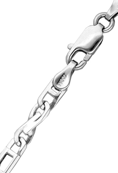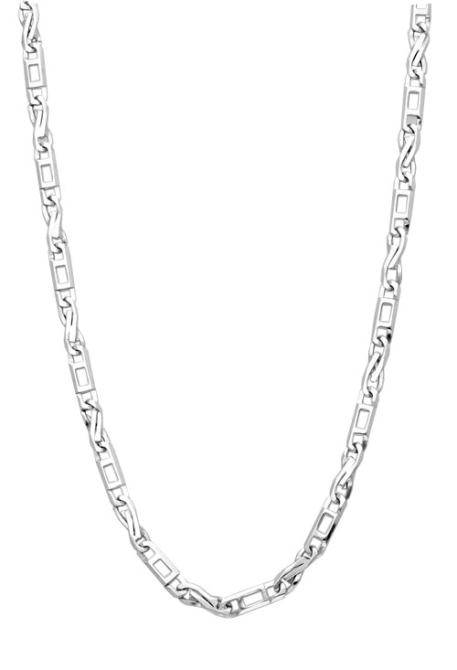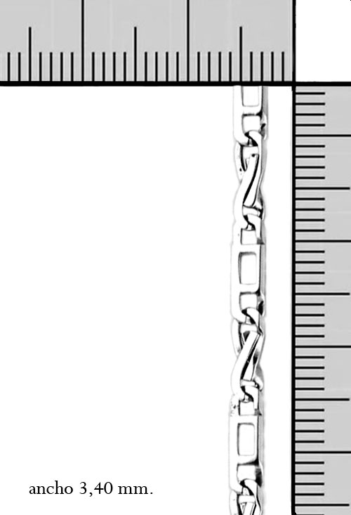 Cadena cuello oro blanco 1ª ley 750 milésimas 18 kilates de eslabones combinados formas de 8 por formas rectangulares, ancho 3 milímetros, largo 50 centímetros y peso 13,15 gramos, una cadena ideal para llevar colgantes de cualquier estilo, cruces o medallas.