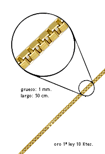 Cadena de oro amarillo 18 kilates modelo veneciano. Presentamos la exquisita Cadena de oro amarillo 18 kilates modelo veneciano, una verdadera joya que cautivará a todo el mundo. Con un grosor de 1 milímetro, una longitud de 50 centímetros y un peso de 4,75 gramos, esta cadena es sinónimo de elegancia y distinción.