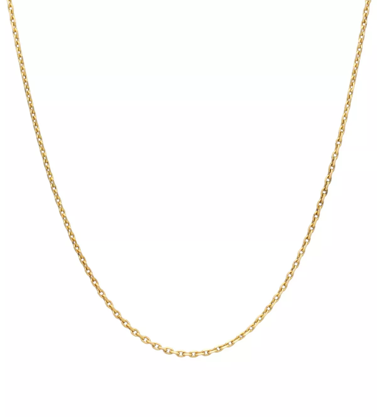 Descubre la elegancia atemporal de nuestra cadena de oro de 18 kilates. Con un diseño de eslabones forzados, esta cadena de 50 cm de largo y 1,70 mm de grosor combina durabilidad y brillo en una pieza versátil, perfecta para cualquier ocasión. Su cierre de reasa garantiza un ajuste cómodo y seguro, ideal tanto para mujeres como para niños o incluso como gargantilla masculina.