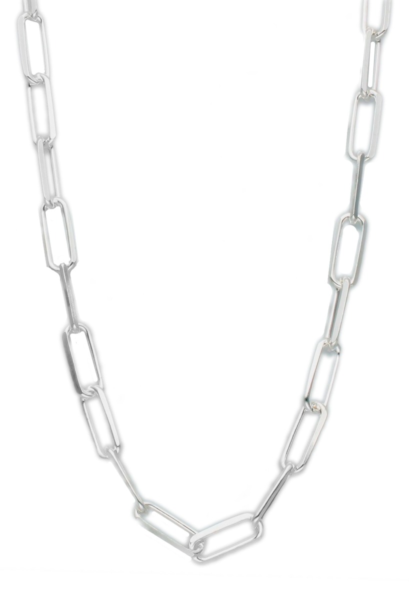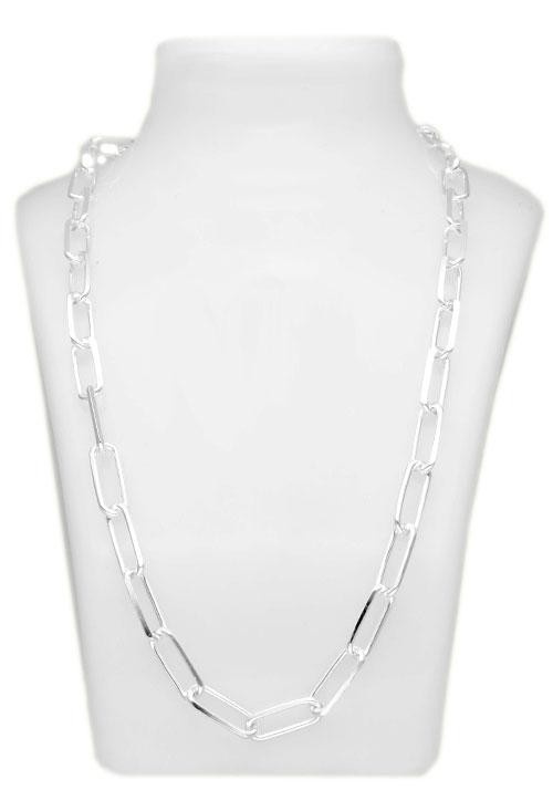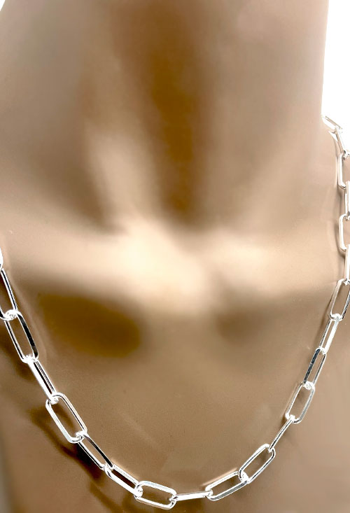 Cadena de plata eslabones macizos modelo forzado abierto, la cadena ideal para utilizar o sola o con colgantes grandes y o pesados, el largo de 50 cm la convierte en un collar ideal para mujer en la que poder colgar cualquier tipo de fetiche, en cambio para hombre es una gargantilla que como mejor queda es sola sin ningún colgante.