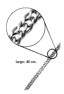Cadena plata ley 925 mmas modelo de eslabones macizos doble rombo, el collar abierto tiene una longitud de 40 cm por lo que lo utilizaras como gargantilla con o sin colgante (mirar dibujo en la parte inferior de la ficha de producto) tiene un peso aproximado de 6,60 gramos y esta terminado con baño de rodio, el mismo que se da a las joyas de oro blanco, el cierre de seguridad es un mosquetón.