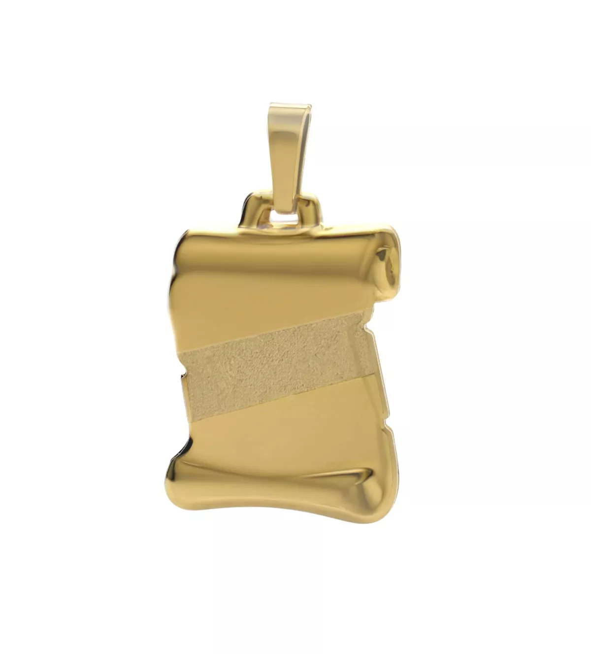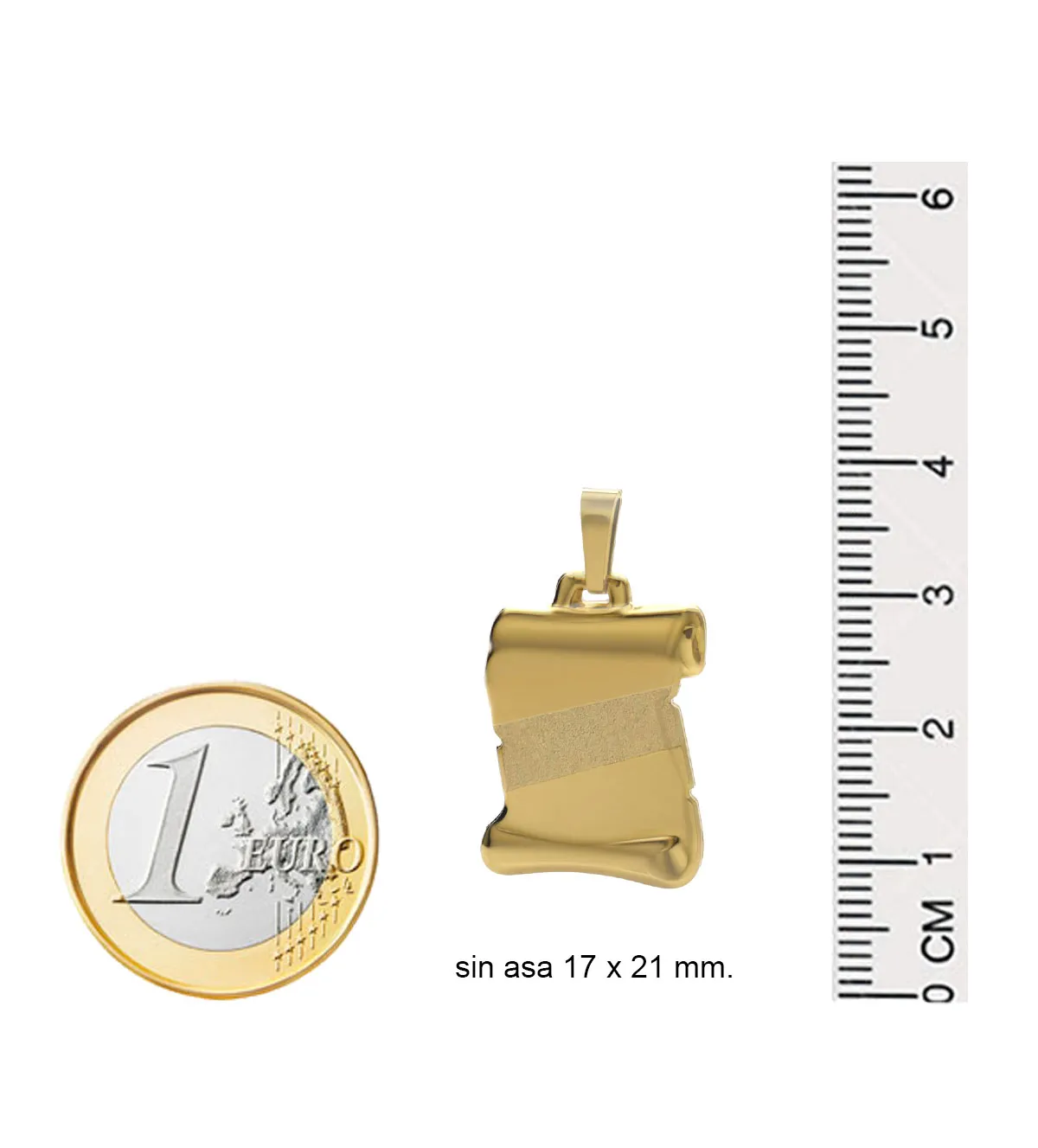 Esta joya está diseñada en un tamaño ideal para adaptarse a cualquier cadena de oro. Su estructura permite un ajuste seguro, asegurando que el grabado sea visible y estético en todo momento.