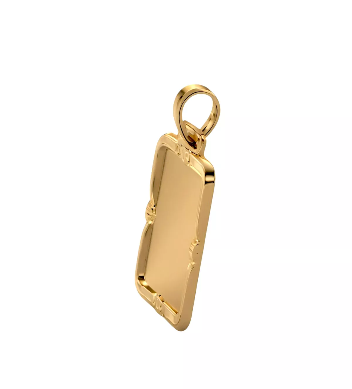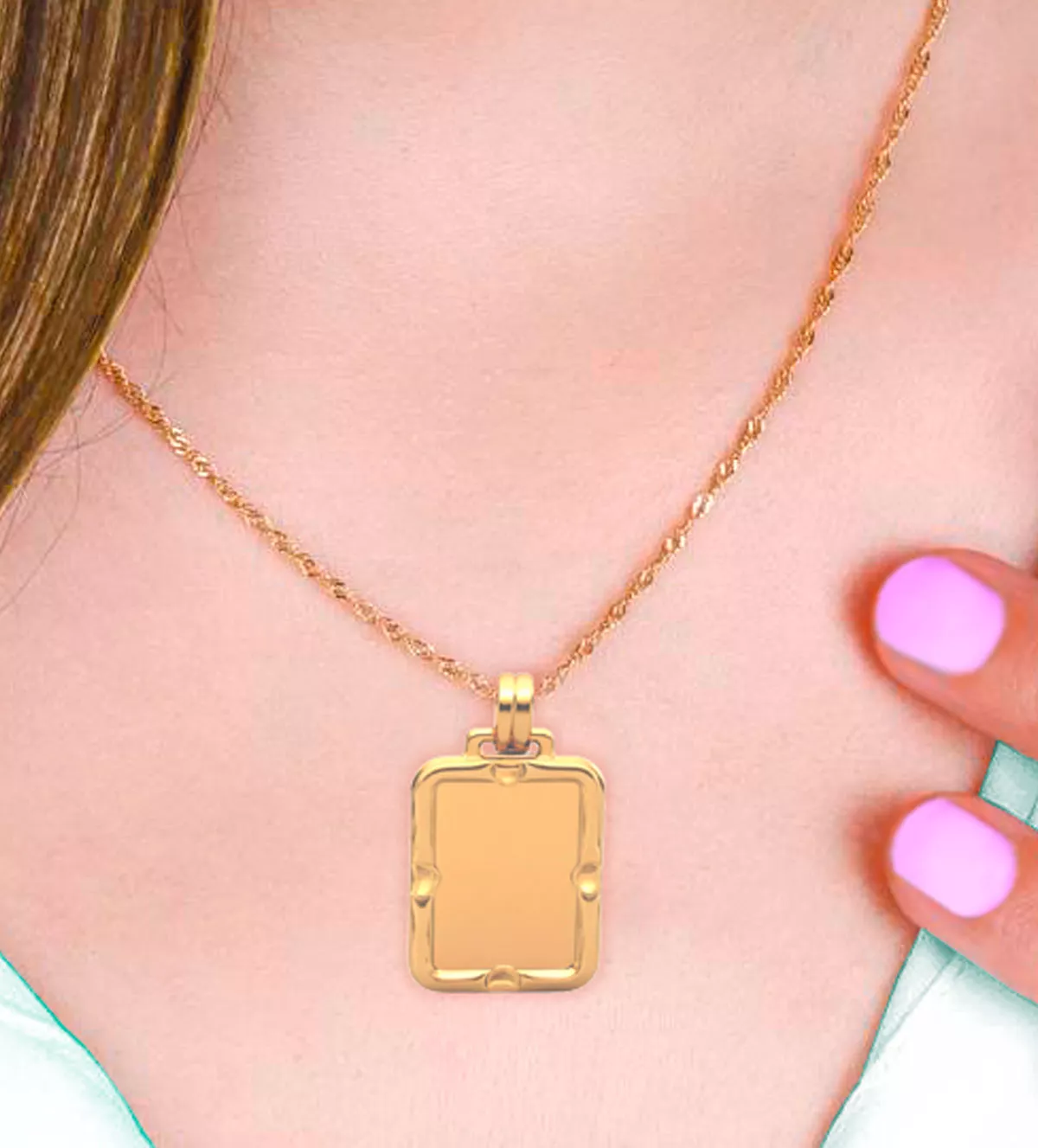 Con unas dimensiones de 20×26 mm y un peso de solo 2.50 gramos, esta chapa de oro es ligera y cómoda de llevar, ya sea como colgante o en combinación con otras piezas. Su tamaño equilibrado la hace versátil, apta para hombres y mujeres que buscan una joya única y personalizable.