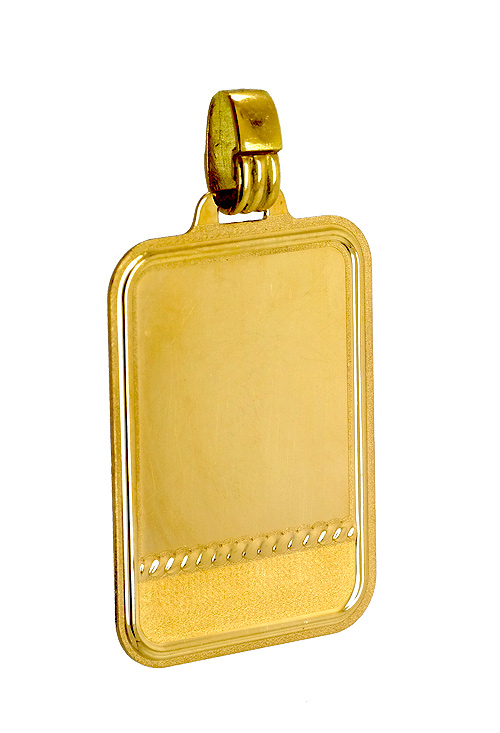 Chapa de identidad para grabar de oro de 1ª ley con parte inferior matizada para grabar nombre y parte superior de mayor tamaño para grabar una fotografía, mide 22*30 y pesa 5,90 gr.