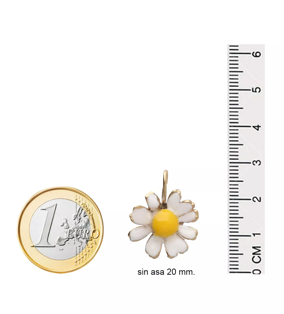 Con un tamaño aproximado de 20 mm, este colgante es lo suficientemente llamativo para destacar en cualquier ocasión, pero también lo suficientemente versátil para complementar cualquier atuendo. El diseño natural de la flor de manzanilla, combinado con el brillo del oro y los delicados tonos de esmalte blanco y amarillo, asegura que este colgante sea una pieza central de tu colección de joyas.