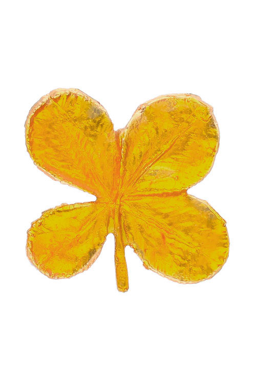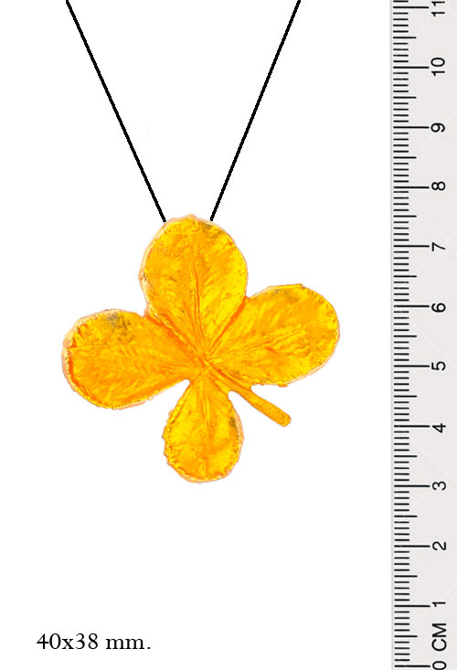 Colgante trébol natural bañado oro y esmaltado en color amarillo, un colgante muy especial y único puesto que al ser una hoja natural no puede haber 2 iguales, los tréboles son elegidos uno a uno por expertos artesanos que los recogen en su medio natural para someterlo a distintos procesos como el desecado o el chapado en oro por medio de electrólisis.